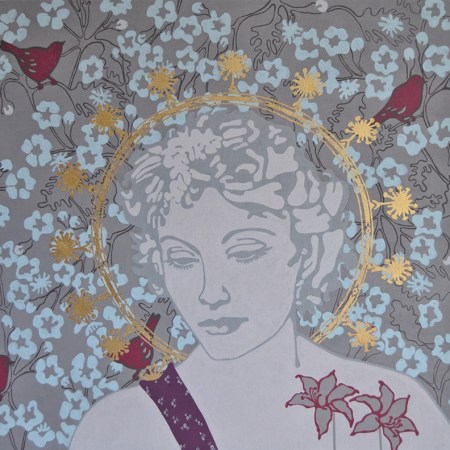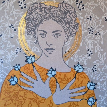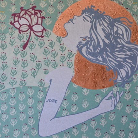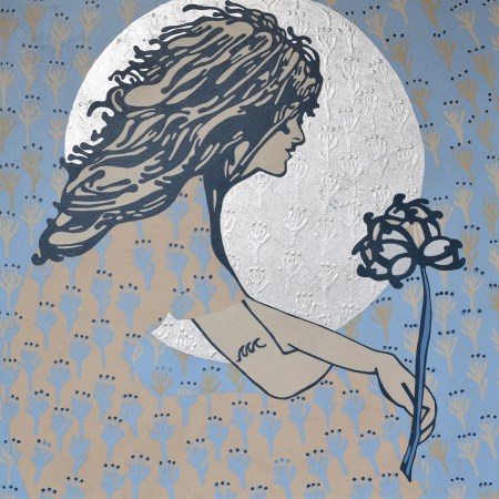 La mujer de la flor en el pecho